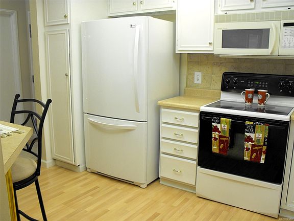 Fresh paint and laminate flooring throughout. Bright unit with lovely views of golf course and mature trees. Full glass enclosed lanai with wide blinds. Walk to light rail, now open to DIA and down town. Very clean, move-in ready.