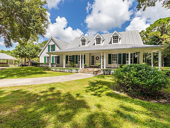 All Sizes Approx. Picturesque Cape Cod Home In Parklike Setting!Located In PBG, Caloosa! This Home Has The Space And Privacy You Have Been Looking For! Want Out Of The City But Remain Nearby...Here It Is!! This Lush Equestrian Estate Has Been Meticulously Maintained! Elegant Entertaining Or A Fun Pool Party This Home Can Do It All! The Inviting Front Porch Welcomes You! The Large Gathering Room Offers A Beautiful Stone Floor To Ceiling Fireplace & Soaring Wood Ceiling! Beautiful New Stone Flooring In Main Areas! A Large Dining Room That Will Easily Accommodate All Guests!Kitchen Has Been Updated With An Island, Exquisite Countertops, Stainless Steel Appliances And A Coffee Bar! Abundance Of Natural Light Pouring In From The Many Windows! Please See More Master Bed And Bath Is Ample In Size, Offering A Soaking Tub, Double Vanity, Large Walk In Closet And Sliders Out To The Pool And Patio. Second And Third Bedrooms Are Perfectly Set As A Split From Master, Both Guest Bathrooms Have Been Updated! A Large Bonus Room Would Be Perfect For A Kids Playroom/Home Office/Hobby/Media. The Wall Of Sliding Glass Doors Pocket Into The Wall Inviting The Outside And Inside To Become One! The Large Screened In Patio And Over Sized Heated Pool Area Will Be A Favorite Spot For Family And Guests To Gather! The Center Isle 5 Stall Barn Has An Air Conditioned (installed 2022) Feed And Tack Room! Stalls Allow For Horses To Come And Go Into Their Lush Paddocks! 1000 Sq Ft Workshop Will Be The Envy Of All With Toys!! Property Is Fenced And Cross Fenced, Landscaped And Irrigated. Many Mature Oak Trees And Native Trees, Pastures Have Been Cleared But Still Offer Shade. Home And Barn Has Benn Freshly Painted, Home Is Under A Termite Bond. Two New A/C Units One in 2021 And The Other In 2022, Well/Pump House Has New 240 And 120 Amp In Conduit. New Pool Heater In 2022, New Cool Deck, Replaced/Enhanced All Up Lighting, Home Lighting And Drive Lighting. Home Is Located In A Quiet Cul De Sac Location. Very Private And Peaceful!!