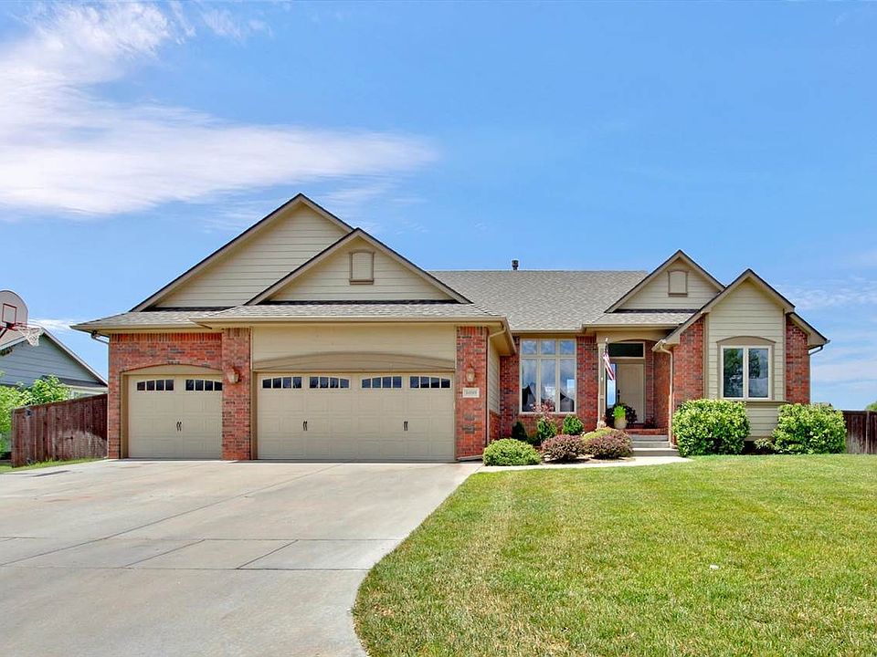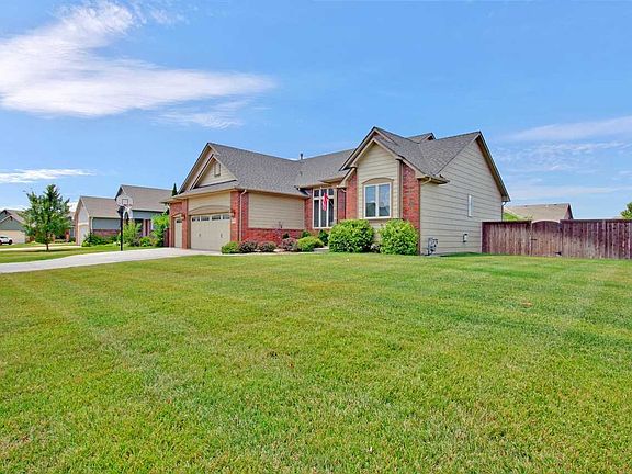 Beautiful home, lots of great updates, large fenced corner lot, washer and dryer hookups on the main level and basement. Dream garage, fully finished and insulated, sheet rocked and painted, build in storage cabinets. Gourmet kitchen is beautiful offering granite, under cabinet lighting and stainless steel, huge walk-in pantry, build in microwave. Great split floor plan, master bedroom and bathroom with jetted tub and separate shower with a large walk-in closet. Formal dining and living room with fireplace. Basement has 2 finished bedrooms, office and large family room wired for surround sound, large wet bar that fits full sized fridge. This home offers great storage. Enjoy the covered and screened in deck overlooking the large corner, cul-de-sac lot with irrigation well and sprinkler system. This property is a must see. New roof, new interior paint, new guttering and stain on deck, new sump pump and hot water, Andover schools, Wichita taxes, 5 bedrooms plus office.
