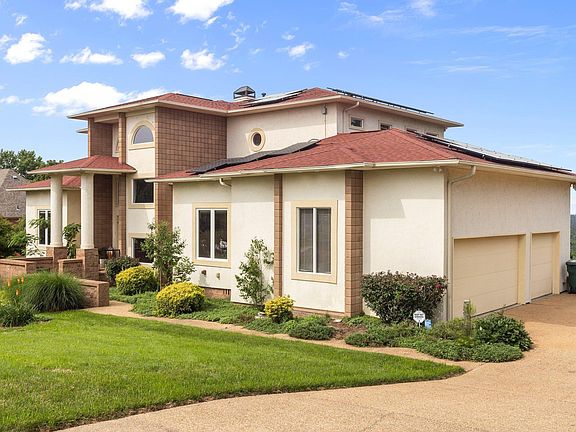 This incredible Spanish style property sits on the highest view point of Little Rock with the most remarkable scenery. Seller will most miss separate balconies on each level perfect for enjoying over an acre of beautiful landscaping and perfect for entertaining. This property features a fully owned Solar Panel system and a backup generator with automatic switch. The unfinished basement has been converted to a wood shop dust collection. Both the main living area and primary suite have fireplaces for the home owners' enjoyment and the garage has a converted electric car hook up. The garden features fruit trees including peach, pears, apples, figs grapes and plums and there is a separate fenced in area for pets or contained back yard use. Don't miss all of the updates on this one of a kind home.