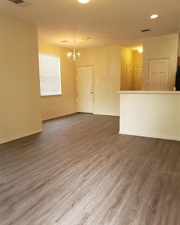 Open floor plan downstairs with half bath. Kitchen with refrigerator, microwave, new dishwasher & disposal. Utility room off kitchen with washer & dryer. All bedrooms upstairs. Just installed new wood-like vinyl plank floors downstairs and carpet upstairs. Fresh paint in major rooms. Master has private bath and large walk in closet. 2 Car garage and privacy fenced yard. Great park and trails nearby