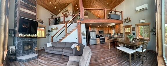 This mountain chalet was built with quality in mind. from top to bottom. From the floor to ceiling wall of windows, blackout shades with remote tankless hot water heater, granite counters, heated floors in bathrooms, tongue and groove vaulted ceilings, knotty alder doors, cabinets, trim, solid walnut stairs and banister, extraordinaire fireplace. large windmill ceiling fans, and whole home Generac generator are just a few of the amenities this home has. Located in Diamond Peaks, home sits on approx. 1 acre of treed privacy. The double garage features are extra long side with shop area and the other side for storing ATV's. Covered outdoor parking for any extras. Take in the views of this summer storms as well as the outstanding sunsets from the comforts of your home or just relaxing on your covered deck. Lots of room for parking with easy in out circular driveway. This home is turn key with quality furnishings some personal items are excluded.