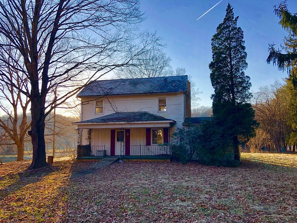 Less than 3 miles from Route 33, you will pass rock formations, rolling hills, meandering curves and fields as you make your way home. This 4.43 acre lot offers a large home, the original homestead wooden barn, several mature fruit trees, towering pines for shade and a spacious yard to enjoy. There is a creek on the back side of the property. The home has a large kitchen and living room, which features a brick fireplace and built-ins. Being sold AS-IS.