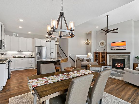 This beautiful townhouse will WOW you with it's open living, dining and 2-story living room space. Upgrades galore!! Upgrades include maple, pre-finished, white kitchen cabinets with trash rollout, rollout shelves, soft close doors and drawers, crown molding, white trim, raised vanities, raised counter above washer and dryer, white owner's suite bathroom cabinets, Pella windows and Pell patio doors, and a bonus addition of a deck with stairs and wi-fi garage door opener. This is a luxury townhome at a great price. This is the one you have been waiting for, to call home!