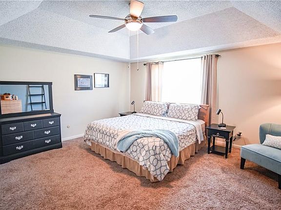 No HOA here! Personal residence, short-term or long-term rental. Great options here. Large corner lot off 87th Street between Lackman and Pflumm. The third level is a spacious master bedroom suite, complete with vaulted ceilings, walk-in closet, linen closet, large vanity and separate bathroom with full bath, large windows and ceiling fan. Updated eat-in kitchen, living room with fireplace and walk-out patio, second full bath and two bedrooms with large closets are on the second level. The bottom level has a potential fourth bedroom or office, separate storage area and washer dryer. The garage is also on the lower level.