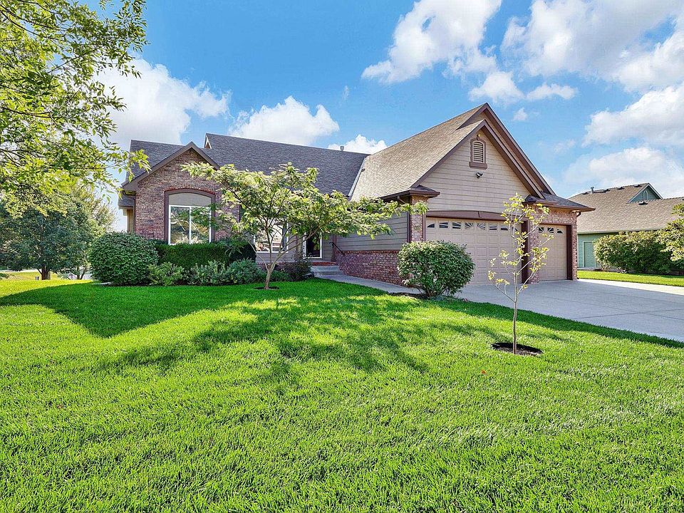 Discover this stunning Robl-built ranch in Auburn Hills, perfectly situated on a large pond lot. Offering 5 bedrooms, 3 bathrooms, and an oversized 3-car garage. Inside, the open-concept floor plan features large windows that frame the views and a cozy fireplace with custom built-ins. The kitchen is designed for both function and style with a walk-in pantry, bar-top seating, smooth cooktop, and wall oven. The master suite is a retreat of its own with bay windows, deck access, dual vanities, a garden tub, 4’ shower, and spacious walk-in closet. Two additional bedrooms, a full bath, and a laundry room with wash basin, cabinets, and folding counter complete the main level. The walk-out basement expands your living space with a large family room and corner fireplace, two more bedrooms, a full bath, and generous storage. This home comes along with a 15KW external generator providing extra peace of mind. Exterior features include an oversized garage with painted floors, additional side parking, professional landscaping, covered entry, sprinkler system with irrigation well, spacious covered deck, walk-out patio. Enjoy the Auburn Hills lifestyle with golf, swimming, and endless opportunities for relaxation and recreation!