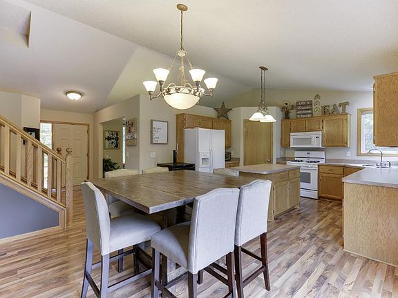 Directions North on 169, West on Cty Rd 9, North on 142nd, East on 296th, home at end of the cul de sac., Home is nestled in a beautiful, wood, private setting on cul-de-sac. Luxurious, private master suite to the panoramic woodland views, this home is suitable for both entertainment and relaxation. Oversized garage features walk-up. Walk right out to the expansive backyard, and enjoy all that Minnesota has to offer. Just minutes to the Sherburne Wildlife Refuge, Elk Lake and more! Main floor DR, walk in pantry, center island, and open concept! This home has it all!