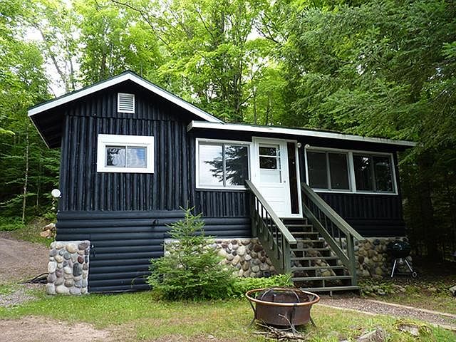 YEAR-ROUND 2 BED, 1 BATH LOG CABIN ON ADELAIDE LAKE IN WINCHESTER. Enjoy the scenic drive to the perfect cabin perched peacefully over the beautiful water. You know that feeling when you've made it to the 'lake house'? This cabin exudes this almost indescribable feeling, and more! Walk into the space and find the living room nestled comfortably by the large wood fireplace suited for every season. 2 bedrooms and 1 bathroom sit off to the side allowing for privacy. With all furnishings included in list price, friends and family can play pool while others cozy up to fire. The large windows wrap around the cabin with the three-season porch perfect for every meal. The dense forest surrounding the property creates a quiet and enjoyable setting. Relax in the gazebo, swim in the lake and enjoy the close connection of the cabin to the lake this summer!