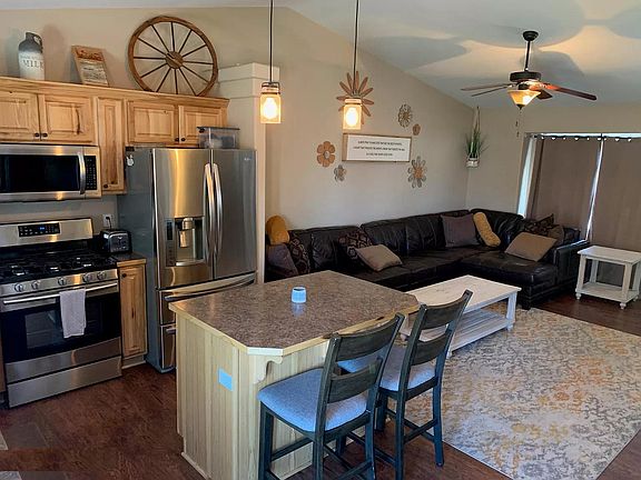 Beautiful 4 bedroom home in friendly neighborhood. Custom master bedroom on main floor w/walk-in closet and stone flooring, 3 carpeted bedrooms on upper floor, one has a walk-in closet. Wood floors on the main level. Dining area has french doors that open to a new patio overlooking a landscaped back yard. One block from elementary school, 2 miles to middle school and high school. Shopping and restaurants nearby. Fenced yard with RV parking alongside house, and a 2 car garage. All appliances, plus washer and dryer included. Owner pays water and sewer, Renter pays electric, gas, phone, trash, internet and other utilities. No smoking or vaping. Security deposit plus first and last month rent due at signing. One year lease (extendable at Owner's discretion), but a shorter term may be negotiated. Renter mows lawn and maintains yard and shrubbery (gas mower provided by Owner). Renter monitors automatic yard irrigation as needed. Renter responsible for snow removal and sidewalks as needed.
