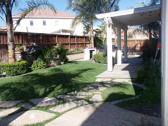 Beatiful 5 bedroom 3 bath, Eastvale Area home. Property features, light and bright tile entry, large kitchen with white cabinets and custom paint, large family room with fireplace and a mainfloor bedroom and bathroom. Upstairs you will find 4 large bedrooms (one bedroom was added without permits). The master bedroom boasts nuetral custom paint and large suite style bathroom. Outside the eyecathing landscape gives wonderful property frontage and the back yard boasts a built in fountain and outdoor island bar-b-que. This is a great value for the price, truly must see!