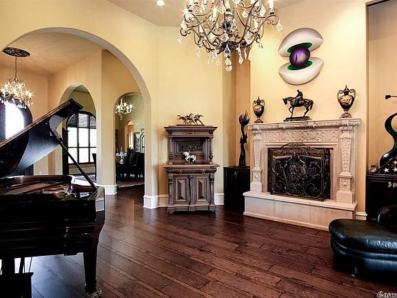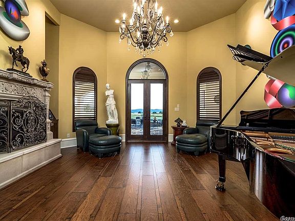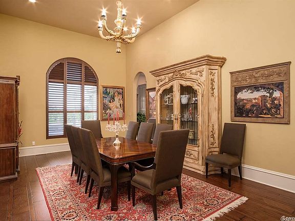 Transport yourself to a Mediterranean Estate overlooking Lake Maumelle. On more than four acres, this serene villa is made for entertaining! A formal entry opens to a dining room with seating for twelve as well as a music room with a double-sided fireplace adjoining the hearthroom.The gorgeous stucco one-level overlooks the flagstone patio & pool.The patio features an outdoor kitchen, pizza oven, fireplace & entertainment area while a hot tub flanks the gunite, salt water pool. 8 garage bays. See remarks.