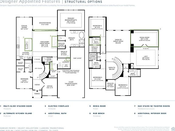 The Lansing makes a lasting impression with its grand two-story foyer featuring an elegant circular staircase, leading into a stunning two-story great room with a desirable covered patio, upgraded with a 4' extension. A Multi Slide Stacked Door connects the great room to the outdoor space, creating a seamless indoor/outdoor flow. A private home office and a secluded bedroom suite are situated at the front of the home. Beyond the entry, the home opens to a spacious great room and a thoughtfully designed kitchen, which overlooks a bright casual dining area. A large center island in the kitchen with a breakfast bar, abundant counter and cabinet space, and a generous walk-in pantry, with the added convenience of the pantry. The primary bedroom suite is enhanced by a beautiful tray ceiling, dual walk-in closets, and a luxurious primary bath with dual vanities, a large soaking tub, an upgraded deluxe shower, and a private water closet. Upstairs, a spacious loft connects to three secondary bedrooms, including one with a private bath and two that share a hall bath with a dual-sink vanity, each featuring walk-in closets. Additional highlights include a 60" electric fireplace in the great room, a convenient powder room, an everyday entry, a centrally located laundry room, and extra storage space throughout the home. Disclaimer: Photos are images only and should not be relied upon to confirm applicable features.