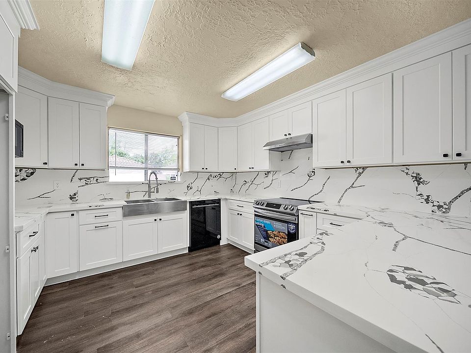 Lovely one story NO CARPET home in high desirable Briar Hill. This 3 bed, 2 bath, 1 home office house has over 45K upgrade recently including high quality vinyl floor, brand new kitchen with 36-inch farm sink and Kohler Pro faucet, new stove, new Insinkerator garbage disposal; new vanities, Moen faucets, light and mirrors in all bathrooms, two new toilets; Fresh paint throughout the whole house, new lighting fixtures in most of the area(see upgrade list in attachment). Great separate floor plan offers privacy. Breakfast and two bedrooms overlook the nice Zen garden. Easy maintained yard. Landlord would provide washer, dryer and refrigerator as requested. Zone to great rating HISD schools, easy access to Highway 6 and I 10, restaurants and retail stores. Community amenities including pool and parks.