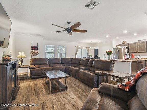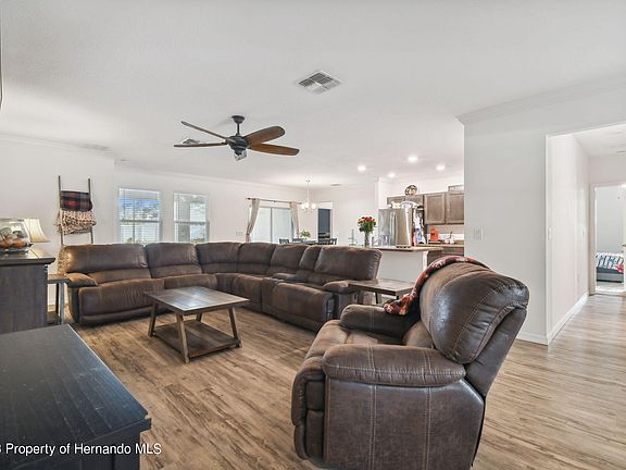As you step into the residence, you will immediately notice the seamless flow and thoughtful design. The double split floor plan ensures optimal privacy and comfort for both residents and guests alike. The main living areas of the home are inviting and an ideal space for entertaining and everyday living. The tastefully designed kitchen has ample storage and is the heart of the home. Its central location allows for easy access to the formal dining area and adjacent family room, creating a seamless space for gathering and creating lasting memories. In addition to the remarkable living spaces, this home also offers a dedicated office space. The versatility of this room ensures that your specific needs are met, enhancing both work-life balance and convenience. The master bedroom is a true retreat within the home, providing an oasis of comfort and relaxation. It features a large walk-in closet, offering ample storage space for your wardrobe and accessories. Additionally, an adjacent smaller closet provides even more storage options. The master bathroom is a sanctuary within the home, featuring a separate shower and soaking tub. Unwind after a long day by immersing yourself in a relaxing bath or indulge in a refreshing shower. Additionally, the private toilet room offers added privacy and convenience. The home features an inside laundry providing convenience and ease in managing household chores. The triple garage gives ample space for parking vehicles and additional storage. Whether you have multiple cars, recreational vehicles, or simply need extra room for storage, this garage provides the ideal solution. To top it off, the property features a large driveway with space for 4 or more cars. Step outside to the screened lanai and fenced backyard which create a private haven for relaxation and recreation. The perfect place to enjoy the cool spring mornings or tranquil fall evenings. The fence offers peace of mind for families and pets, allowing them to freely enjoy the outdoor space. Furthermore, a large storage shed in the backyard provides additional storage options for any other items you may want to keep neatly organized. The shed might also be reimagined into a she-shed, man cave, or additional office space. The location of this home is truly exceptional, with its close proximity to the enchanting Weeki Wachee Springs. Embrace the natural beauty of this renowned attraction, where you can enjoy mesmerizing mermaid shows, kayaking, swimming, and hiking adventures. Living in the Royal Highlands community allows you to experience the best of both worlds - the tranquility of your private retreat and the excitement of nearby recreational activities.