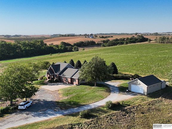 Rare Opportunity! 28.95 acres of property with 360-degree views for miles on end that can be used for recreation, hunting, or farming! Enjoy peaceful sunrise and sunset views with a property you must see in person to appreciate. Country living and yet easy access to I-680 to be anywhere in Omaha in minutes. Beautiful 1.5 story home featuring 2 bedrooms and 2 bathrooms, plus a loft space and an attached, oversized, 2-car garage with attic space above. Also a detached outbuilding for all your equipment and toys! Enjoy gardening, apple and cherry trees, the fenced horse pasture with water source, and so much more to do outdoors. Watch wildlife from your front porch! The list of possibilities goes on! The walkout basement takes you to a beautiful patio space with an in-ground pool that is currently covered with a composite deck. Highly sought-after Bennington Schools and a low tax levy, don't miss out!