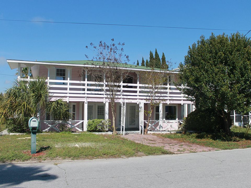 ONLY THREE BLOCKs FROM DEDICATED BEACHES. Bid-A-Wee charmer with four bedrooms and three baths. The first floor features the master bedroom with large bathroom that has double vanities and a walk-in closet. The living area has french doors out to a covered porch. Just off the living room there is a full size bath for company. The second floor features a kitchen with tile counter tops and a dining area. The dining room has french doors out to a covered balcony. It also has three additional bedrooms with bathroom. Large corner lot! Outdoor shower and a finished shed.