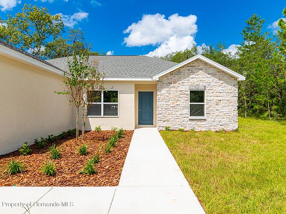 If you're looking to be different and to have the ability to own a highly efficient NEW BUILD then this is it. Welcome to The Hayden, built by Southern Crown Homes Inc. This home is built using Insulated Concrete Forms (ICF) which create solid poured concrete walls that provide superior strength and R28 insulation on the exterior walls with R30 in the entire attic keeping your utilities at a super low cost.This gorgeous home features 3 bedrooms, 2 bathrooms, and a 2 car garage. Boasting an astonishing 1,532 sq. ft. of living space and situated on almost a full ½ acre lot this parcel affords more than most. The custom stone facade, 9 foot ceilings, Cambria Quartz countertops with under mount sinks, MOEN fixtures, 42 inch real wood-soft close cabinets, ceramic tubs, subway tile shower stalls with glass soft close shower doors, 6 inch baseboards, and luxury vinyl plank flooring are all standard in every Southern Crown Home. From the moment you drive up to the home the custom stonework captures your eye and invites you in! Open the front door and you will certainly notice the large, open floor plan that allows for plenty of space to entertain guests or family while still maintaining a split floor plan that keeps the master bedroom separate from the other guest bedrooms. The master bedroom features a large walk-in closet, LVP flooring, 9' ceilings, and attached master bath that has Quartz counters with undermount dual sinks set on wooden, soft close cabinetry, a Subway tile walk in shower stall with glass soft close doors, and separate water closet for privacy. The kitchen has a center island with Quartz counters, wooden cabinets with plenty of storage to include a spice rack, new range, microwave, dishwasher, pantry, and flush mount LED lighting. The large open living space offers a sliding glass door to your lanai for quick access to enjoy the beautiful Florida evenings. The guest bathroom features Quartz Counters w/ undermount sink, ceramic tub/shower combo with subway tile, and exhaust fan. The guest bedrooms each offer a large closet, LED flush mount lighting, and LVP flooring. The laundry room is inside the home and it offers interior access to the garage where you will find your NEW A/C and water heater. If you want to insulate your garage you just have to insulate your garage door. Unlike most competition, SCH insulates the attic above the garage! All Southern Crown Homes have nickel door hardware, solid surface 10' window sills, insulated solid core front doors, 40 gallon water heater, 14 or 15 SEER HVAC systems w/ programmable thermostats, garage door openers, Taexx built in pest control system, Bora Care Termite prevention, a 2-10 Home Builders Warranty, and so much more.
