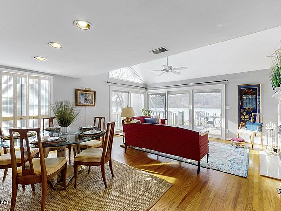 Looking for a weekend get-away or daily oasis? You decide! This property would be perfect for either! Escape to the River with this beautiful end-unit townhome located in Cardinal Harbour. This multilevel unit provides an abundance of windows that set the stage for panoramic views of the River- just stunning! Cardinal Harbour offers a pool, tennis courts, clubhouse and stables. Incredible Bonus--this unit is one of the lucky few to also have ownership of one of the coveted boat slips! As you enter this property you will be drawn into its open feel. Even the main stair treads are open to create a light, airy feeling throughout. The open great room and dining area boast hardwood floors as well as walls of glass windows and doors that lead to the deck. Outdoor Entertaining flows easily while the river becomes your backdrop with its boats and barges quietly moving along. On winter days, cozy up to the gorgeous fireplace surrounded by lovely built-in bookshelves that extend to the top of the cathedral ceiling. The fully equipped kitchen offers stainless steel appliances, a tiled back splash and walk-in pantry. There is a built-in desk that provides the perfect place for cookbooks, laptop or mail. The powder room is conveniently located off the hallway and completes this level. Peace and calm await you in the master suite, located on ground level. This bedroom certainly wins the bragging rights for "best morning view from bed ever" with its wall of floor to ceiling windows overlooking the river. Step outside to the deck and enjoy your evening cocktail from your private hot tub. In addition to the two walk-in closets (with automatic lights) there is a wall of lovely built in cabinets for extra storage. The master bath has a separate sink with a third closet and organizers in one area that adjoins with the shower area. A large second bedroom, laundry room and half bath complete this level. Head up to the top floor to discover another private suite. Be the envy of all your co-workers if you choose to utilize this amazing space as a home office! With its abundance of natural light, spacious full bath and two closets the options are endless! Pop some popcorn and head down to the finished walkout basement for movie and game night. There is plenty of space for a crowd and a bar area to set up food and drinks. Head to the outdoor patio and sit around your firepit or take a leisurely walk along the river. It's simply heaven with so much to do and see! Call today to secure your private showing or check out our virtual 3-D tour for more views.
