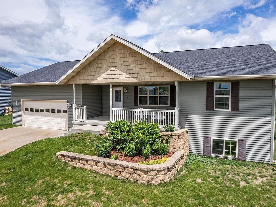 Welcome home to this freshly painted 4-bedroom, 3-bathroom ranch designed with an open concept, split bedroom floor plan & finished areas in the basement, providing both ample space & privacy. From the front porch, step into the living room which flows effortlessly into the kitchen & dining area that opens to the deck offering a welcoming atmosphere for gatherings. The primary suite is a private retreat with a luxurious walk-in closet & ensuite bathroom. Three additional bedrooms & the versatile rec room can be customized to suit your lifestyle. Convenience is key with main floor laundry & attached 2-car garage. Step outside to enjoy your fully fenced backyard, relax on the deck, or unwind on the covered front porch, which faces the park & offers breathtaking views of the Baraboo Bluffs.