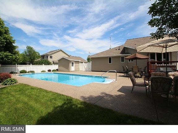 Great rambler in Morningstar Addn with amazing pool area! The in-ground pool offers a huge exposed aggregate patio, large deck, pool shed and vinyl privacy fence. Open great room on the main floor with 3 BRs up and 1 down, 2 FPs, bar area, and built-ins!