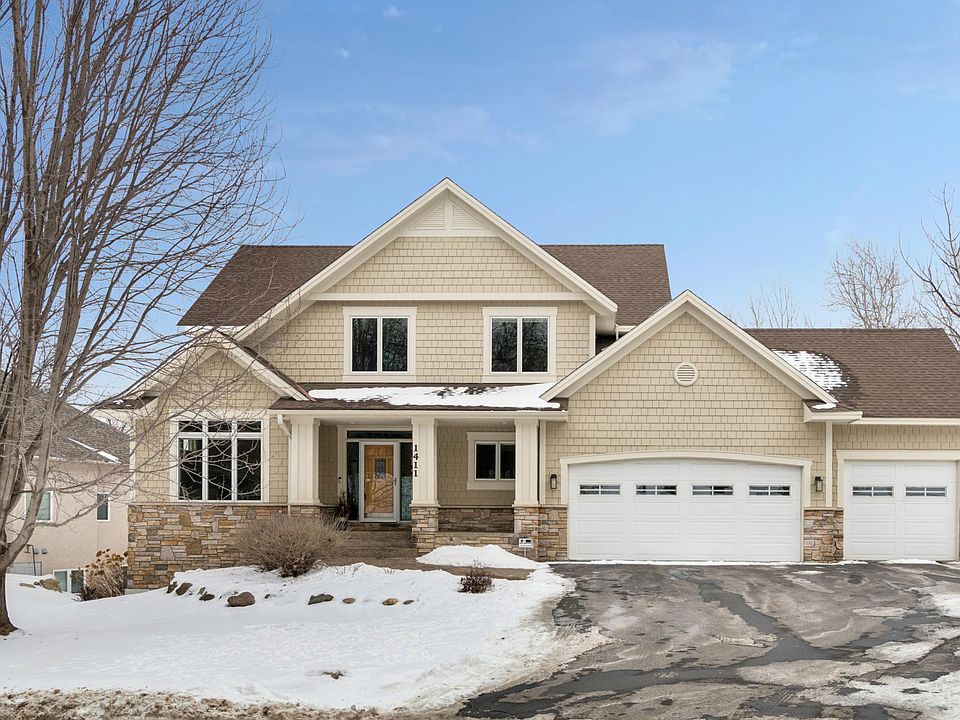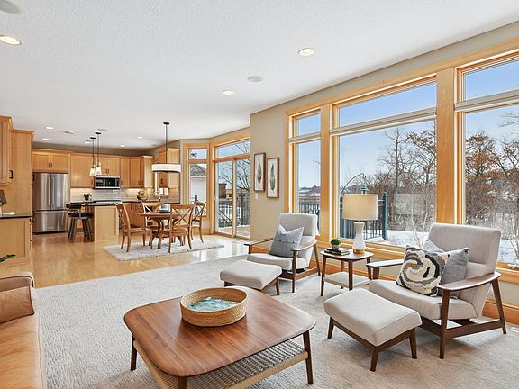 Beautiful walkout 2-story in a convenient, close-in Minnetonka location! Sparkling interior features 9’ ceilings, walls of windows, hardwood floors, solid doors, detailed trim-work, 2 gas fireplaces, built-ins and a super functional, open floorplan. The chef’s kitchen boasts all new KitchenAid appliances, granite counter tops, ceramic backsplash and oodles of cabinetry with an adjacent private dining room plus informal dinette. Off the dinette, cozy up in the family room by the fireplace or head out the sliding glass door to the maintenance free deck and lawn. Wonderful office with French doors, mud room with locker system, laundry room with sink and folding area, and powder bath finish off the main. 4 sizable bedrooms up, include a primary suite with dual sinks, soaking tub, shower, and dressing room with custom cabinets. Fun walkout level with wet bar offers plenty of space for ping-pong, games and movies, plus an exercise room, 5th bedroom/guest suite, and ¾ bath. Triple heated garage has built-in shelving and plenty of storage! Private .6 acre treed lot with a sweeping lawn and nature pond, perfect for BBQ’s, entertaining and play. Fresh paint, new carpet, designer lighting, and solid mechanicals. Minutes to Ridgedale, fantastic restaurants, and to downtown Wayzata and Minneapolis. Wow!