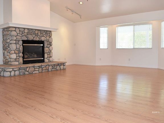 Beautiful Views! The circular driveway is oversized and the driveway extends into the west sideyard for concreted R/V parking. Gorgeous covered stone front porch. Double door entry into the foyer with crystal chandelier. Coat closet. Spacious living room with a large stone fireplace with bench and large shelf, the room has vaulted ceilings and plenty of lighting. Office has double glass doors. Large kitchen with island, granite countertops, walk-in lighted pantry and stainless steel appliances. Dining area in kitchen with beautiful lighted chandelier and windows. Door to rear patio. Formal dining is off of the kitchen and could be used as a second office. Indoor laundry room with storage, sink and a half bathroom. The two guest bedrooms have walk-in closets and share a "Jack and Jill" bathroom with a double vanity. Hallway has two linen storage closets. Spacious master bedroom with french doors to rear patio. Master bathroom has double sink vanity, walk-in shower, soaking tub, privacy closet and large walk-in closet. Surround sound speakers. Large covered rear patio. Garden area. Storage shed. Three car garage. Two A/C units. Owned solar system. West automatic gate. Fully fenced.
