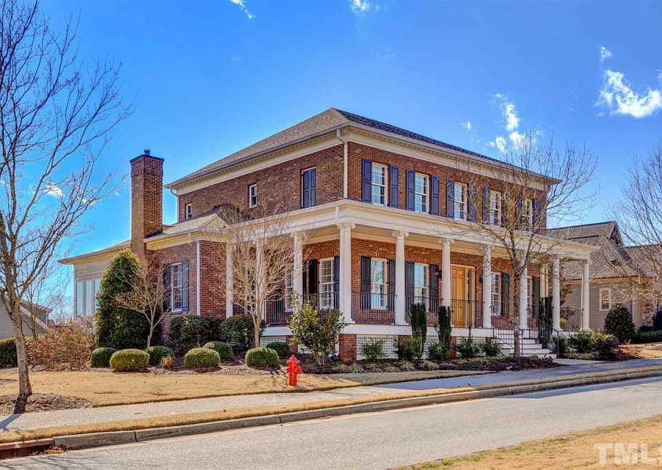 Unique well appointed custom home with a lower level one bedroom guest suite or in-law residence with elevator. Main floor owners retreat +3-4 BR's on the upper level. Very functional kitchen w/gas cooking, island, counter seating, pantry, and amazing laundry room. Fine craftsmanship, stately brick exterior, solar powered water heater, and wrap-around front porch on the most notable street in Briar Chapel. See V-tour & floorplans. Briar Chapel amenities/gardens, near UNC, Hospitals, + shopping.