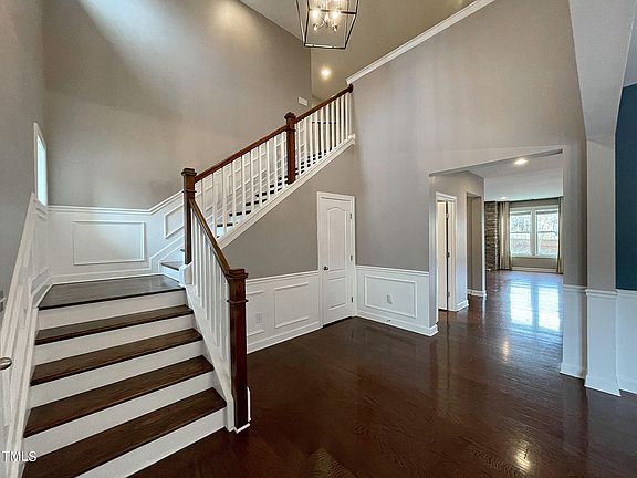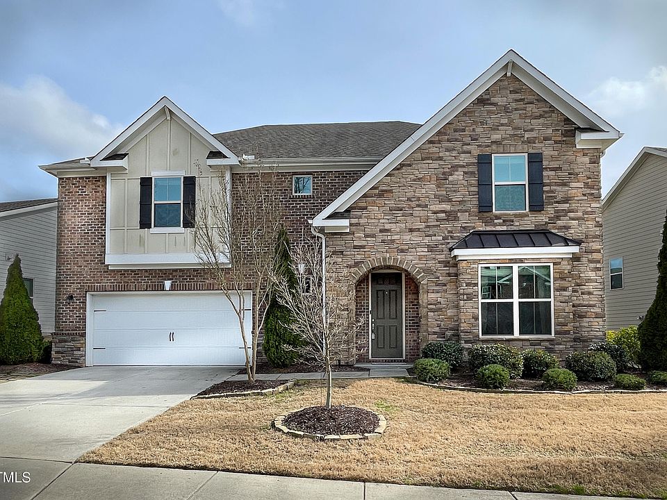 LOCATION!! Beautiful brick and stone front transitional in popular and very convenient Jordan at Southpoint SWIM community!! Soaring ceilings, bright open floor plan, 1st floor Guest Bedroom with private bath and fenced backyard! Dramatic 2 story Foyer. Dining Room with hardwoods and wainscot. Huge Family Room with hardwoods and stone fireplace opens to Chef's kitchen. Kitchen has center island, stainless appliances, granite countertops, tile backsplash, walk-in pantry and sunny breakfast nook. Bar area with granite, tile backsplash and beverage fridge. Primary Bedroom suite with sitting room. Spa Primary Bath with dual vanity, soaking tub, separate tile shower and large walk-in closet! 4 spacious secondary bedrooms-- 1 with ensuite bath, 2 with Jack & Jill baths. Bonus room is great for entertaining! Mudroom with built-in cubbies. Beautifully landscaped flat fenced backyard with patio and pergola. Walk to the American Tobacco Trail! Minutes to Southpoint Mall, Jordan Lake, RDU and RTP!