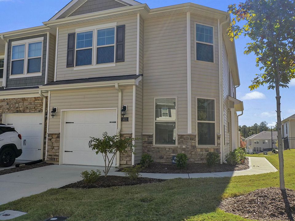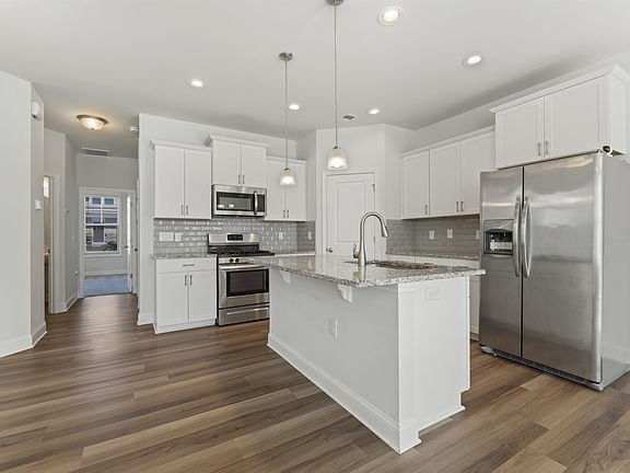 Stunning end unit townhome with high end finishes! Granite tops in kitchen & bathrooms! Gas range/microwave and SS Refrigerator with beautiful white cabinets make the kitchen a joy to prepare meals in! Eat at the oversized island or in the dining area just beside. Office space on first floor is bright and spacious w/bay window providing tons of natural light! LVP flooring in most of first floor provides durability and easy cleaning. Home equipped w/Zwave thermostat,Skybell doorbell,security cameras & 3QOLSYS IQ Panel. Master bedroom in huge w/bay window added extra light & Master bath features dual vanity, Oversized shower w/seat & ample closet space!Laundry room has extra storage space & the hall bath is amazing! Secondary bdrms each have great closet space as well! Must see today, priced to sell quickly so don't delay!!!