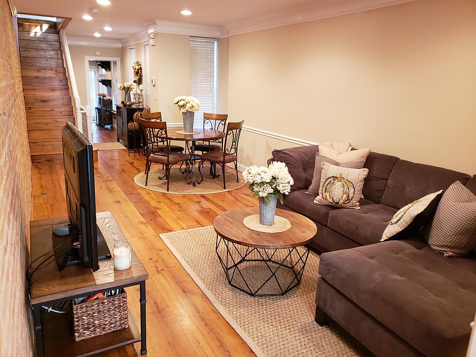 Requires good credit. Great home with unique features like wide-plank reclaimed wood flooring, crown molding, exposed wood beams, and tin style-ceilings. Lots of natural light. -Two bedrooms (second br is smaller than master if that matters to roommates). -One full bath (2nd Floor) and one half bath (on 1st Floor) -Fenced patio -Kitchen has granite counters, stainless appliances, dishwasher and gas range -Partially finished basement with washer/dryer and utility sink -Street parking -One months' rent security deposit required -Must be willing to undergo new credit and background checks -Dog friendly house but requires additional fee and addendum. No cats please. -No smoking -Security system installed. Activation optional at tenant's expense. -Tenant responsible for all utilities. Reply to set up an appointment . Tenant responsible for all utilities. Credit and background check required. Dog considered for additional fee. No cats. No smoking.
