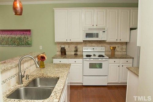 Complete info: http://1411crimsoncreek.CanBYours.com - Great home in superb location. Wonderful Kitchen w/ Gorgeous Granite Counters, Tiled Back Splash & White Cabinetry. LR has FP & Cork flooring. Huge Mast. Bedroom w/ his/her closets. Mbath features Dual Sinks, Soaking Tub & Sep. Shower. Bedroom 2 features a private entrance to shared Bathroom. 2nd flr Laundry Room. Private Back Yard has Zoysia grass, a Huge Patio & White Picket Fence. 2 car garage is fully finished & insulated. Copper Creek is part of the Auburn pool community. Call Krista 919-753-6518