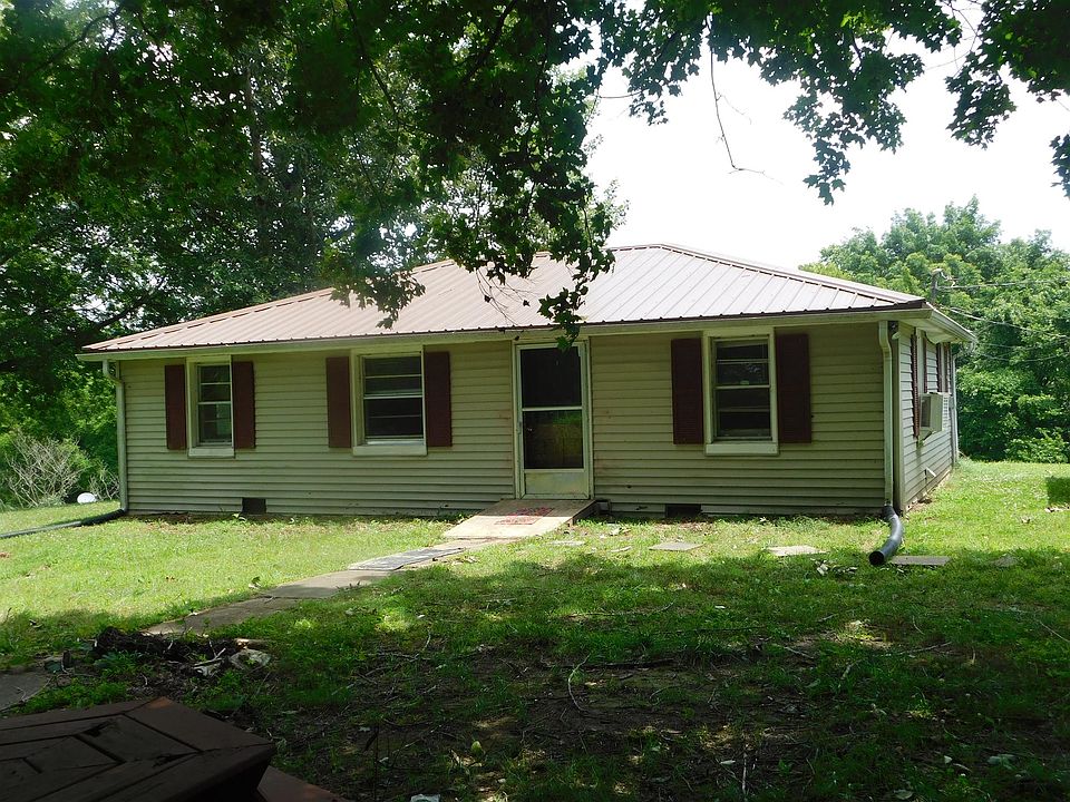 This house has been used as a rental for the past few years and is in need of some repair. It has 2 bdrms, 1 bath, kitchen, living room and an additional room for laundry and/or dining area. Laminate flooring throughout. Detached garage/storage building, another metal storage building that needs some repair. All this sitting on a beautiful 11 acres close to Duck River!