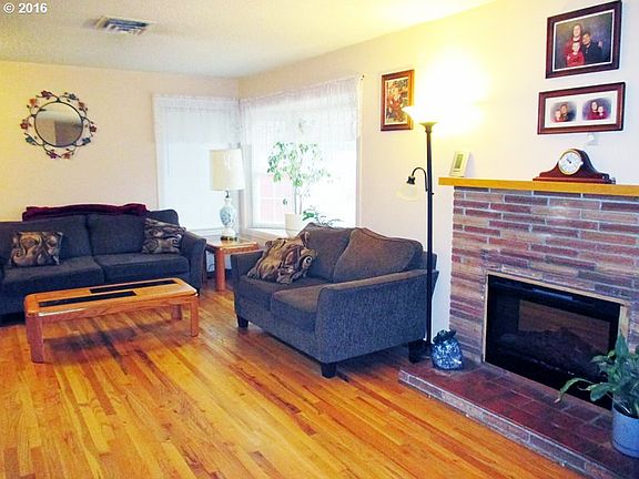 Living room w/ hardwood floors, bay window & fireplace. Kitchen has new wall oven w/ built-in range & microwave, tile counters. Huge family room w/ pellet stove downstairs. Also office/den and 3rd bdrm on lower level. 3rd bdrm has slider to covered patio as well as private bathroom. Double paned windows main level; new gutters. Culdesac location. Fenced front/back yards. Brick patio on side of house. Alley access to carport. Heat pump