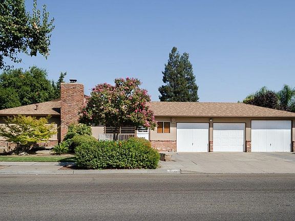 Classic Fresno Headliner home on corner lot. This home was once the model home and sales office for this subdivision. Home sits on large corner lot and features covered breeze way to the garage, since this was the model/sales office there is a separate third car garage perfect for your toys or extra storage. Inside the kitchen has been updated and the home has a large living room and family room. All three bedrooms are spacious and house has new windows. New carpet and paint make this home ready for you to move in.