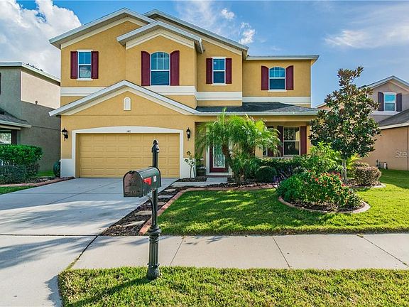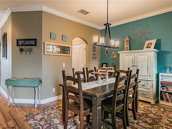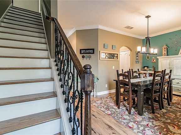 A truly gorgeous pool home located on an expansive pond in the gated community of Trinity East; which is conveniently located off State Road 54 just minutes from the Suncoast Parkway. You are instantly greeted by a welcoming front porch. Through the front door you are immediately welcomed by the formal dining room area; a great space for entertaining. The well appointed kitchen is adjacent to a cozy breakfast nook where you can enjoy your morning coffee. The intimate family room is a wonderful space for watching tv or enjoying the pool and pond views through the glass sliding doors adorned by large barn doors. An excellent feature of this spectacular floor plan is the downstairs flex space, which is perfect for a home office, playroom or den. The downstairs guest half bath can also be used as the pool bath. Upstairs is a grand Owner's Suite which features plenty of room for traditional bedroom furnishings as well as a full sitting area (bonus room) where you can relax and unwind at the end of a long day. The Owner's Suite includes an enormous Walk-In Closet with ample storage room, and a spacious owner's bath with his and hers sink, a garden tub and separate shower. There are 3 additional bedrooms upstairs. One of the second floor bedrooms features an ensuite and conveniently located next to the bedrooms there is a very large laundry room. Schedule your private showing and come see all that makes this listing a desirable place to call your home.