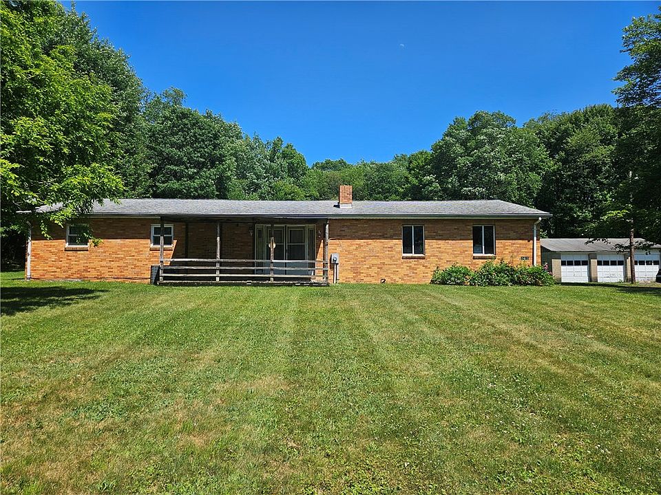 As you step inside, you'll be greeted by a cozy fireplace, creating a warm and inviting atmosphere. The spacious layout includes three bedrooms, providing ample space for your family or guests. This brick home also features a beautiful sunroom to enjoy. A two-car attached garage ensures convenience, while a bonus three-car detached garage offers plenty of room for storage or hobbies. Situated on approximately 3 acres of land, the property provides a peaceful retreat with endless possibilities. Whether you're looking to entertain in style or simply unwind surrounded by nature, this home offers it all.