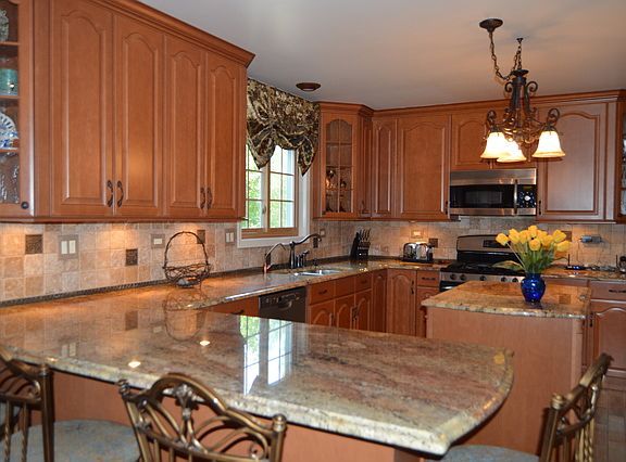 OMG!! YOU WON'T FIND ANOTHER HOME LIKE THIS! EVERYTHING in this home has been replaced or remodeled!! HW or ceramic floor t/o-no carpet. Gorgeous kitchen remodeled w/42' maple cabinets w/crown molding & soft close drawers, travertine marble backsplash, SS appliances, under cabinet lighting, built in shelving, spice rack, coffee nook, baking station & more! DR offers custom, marble FP. 1st flr office w/custom built ins. FR addition w/stone FP. One of the best laundry/mud room w/custom built ins. 3 FABULOUS, custom bathrooms with heated floors, jet & rainfall showers, Italian marble tile, copper & glass bowl sinks. Cr molding, surround sound, ceiling fans t/o. Finished bsmt. Newer furnace, A/C, sump pump w/back up, water softener, roof, siding, gutters w/leaf covers, insulated SPF windows, pewter/glass front door, attic insulation. Stamped concrete driveway & walk. Paver patio w/firepit, stone patio from DR & maintenance free deck w/AB gr pool + shed, pond & fruit trees & garden. 10+