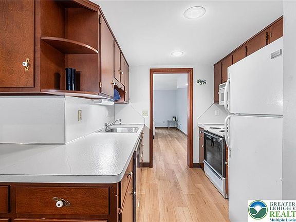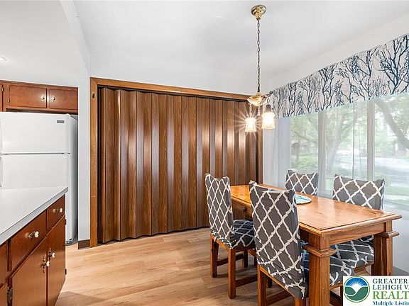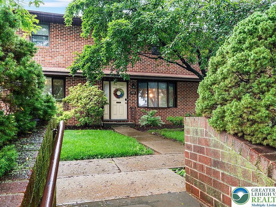 This beautifully maintained brick colonial features maintenance-free living. A welcoming foyer entry with a large coat closet leads you to a spacious open concept living/dining area with sliding doors that lead you to a private balcony featuring a retractable awning. The galley-style kitchen, loaded with cabinets and counterspace, features a large bay window and provides a convenient breakfast nook. The washer/dryer and wash tub are conveniently located within a large 9-foot closet space. New flooring on the entire 1st floor. The second floor offers a generous primary suite with two large double closets, and an en-suite with a dressing area, built-in storage, and a separate room for tub/shower and toilet. Two additional oversized bedrooms with double lite closets, and a full bathroom with separate rooms for vanity and toilet, and a shower complete this floor. The walk-out lower level is fully finished and features a 2nd half bath, two double closets, and entry to an oversized 2-car garage. Outside, you will find a large driveway with alley access for ample off-street parking. All within minutes to Historic Bethlehem, where you can enjoy the many shops and eateries, or visit the annual highly anticipated events such as Musikfest in the summer and Christkindlmarket in the winter.