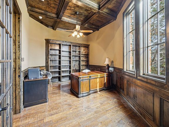A second downstairs bedroom with private exterior access and a full bath with walk-in shower offers flexibility as a guest room or in-law suite. Seven steps below the main floor, a built-in wine cellar features granite countertops, custom cabinetry, and a walk-in storage closet—perfect for wine enthusiasts.