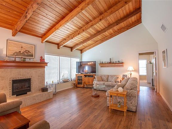 This is an immaculate, well-maintained and loved home. This three bedroom two bath home offers 1,724 sq ft of living space. The large kitchen with new appliances opens up to the dining/great room on one side and a large 21 x 12 bonus room on the other end. The kitchen has loads of cabinets, a pantry and a large breakfast bar for additional seating. This home has natural gas for cooking and for the tankless hot water heater. The great room has a beautiful vaulted wood ceiling with large beams. This home has all new double pane windows, new roof and newer a/c. All kitchen appliances, washer, dryer and water softener system will remain with the home. The three sliding glass doors are all newer too. The master bedroom is nicely sized with lots of closet space. The master bath has a walk-in shower. The other two bedrooms share a remodeled bath with lots of storage and a full size tub and shower. The laundry area is located at the end of the bonus room in it's own closet right off the kitchen. There is also a 20 x 10 open porch area for grilling and a storage shed that will remain too. This home is situated on a .30 acre corner lot. The property is conveniently located to all that Central Florida has to offer. NO HOA.