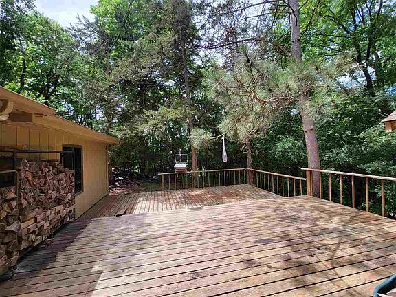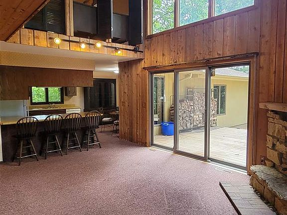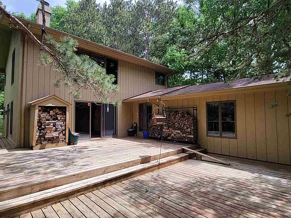Check out this unique home that sits on 1.63 acres of wooded serenity in the city. This home has a large deck for watching all the wildlife. There is a two story liv rm with fireplace, eat-in kitchen with breakfast bar, 4 seasons room, main flr laundry room with pantry area, and more. The whole 2nd floor is the master bedroom, bathroom with sauna and jet tub, & dressing room. Needs some updating but has a ton of potential.
