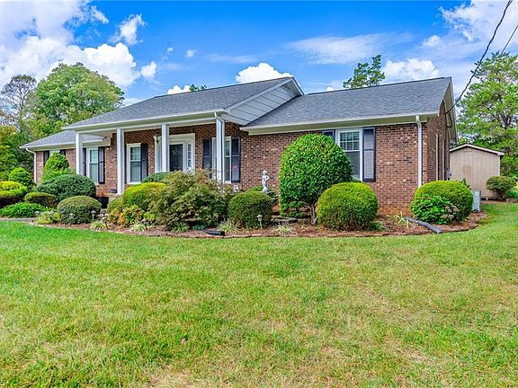 Welcome to this charming brick ranch home situated on a generous half-acre lot in Alamance County! Featuring formal living and dining room, eat-in kitchen w/granite countertops, den w/fireplace, 3 spacious bedrooms and 2 baths. Primary w/private bath. Carport with large storage closet & shed. Enjoy the spacious backyard with patio, perfect for outdoor gatherings. The covered front porch is the perfect place to enjoy a glass of sweet tea. Convenient to I85/40 for an easy commute to triad and triangle. Roof 2023! Vinyl Windows!