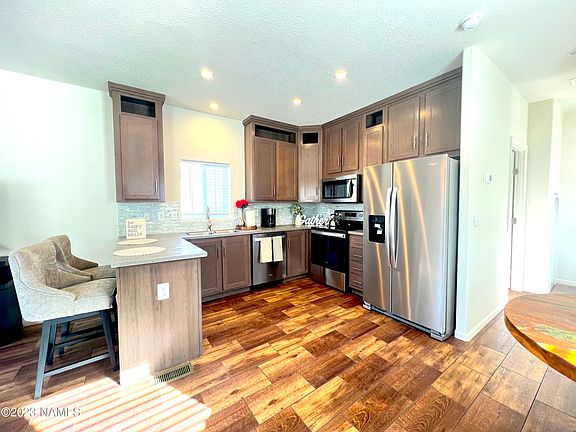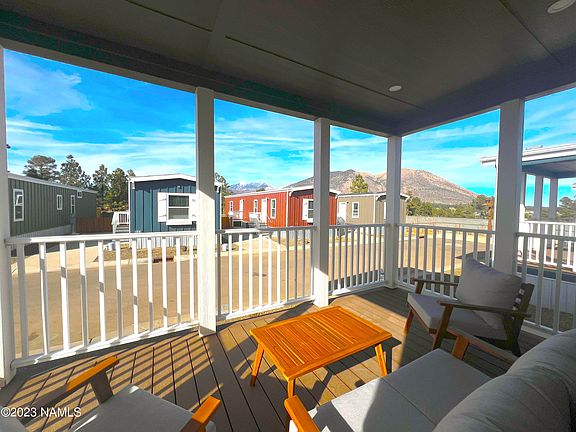 Welcome to Tiny House Village Flagstaff! Located in the center of Flagstaff, a first of its kind where residents can embrace the peace downsizing brings without sacrificing a sense of community. Residents enjoy the freedom of small home living while still having the luxury of a yard. Floor plan A: Pad 6, 7 & 8. This new 1 bedroom 1 bathroom home has stainless appliances, upgraded cabinets & countertops, blinds, AIR CONDITIONING and fenced yard. Also includes upgraded insulation, 2x6 exterior walls, high efficiency dual pane windows and paved driveway. Pad/Land lease includes water, sewer, trash, snow removal, landscaping, property taxes and clubhouse use @ $1,189.10/month. Homes are not for rent. Owner is a licensed Realtor in AZ.