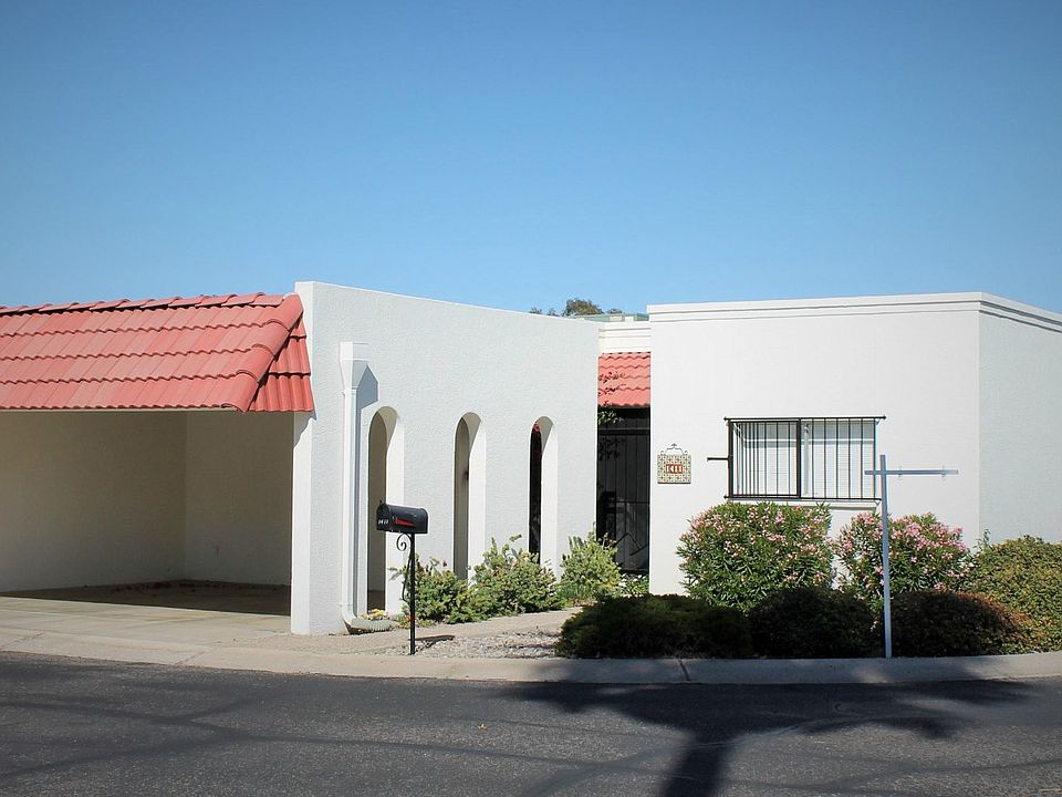 For more information on this property, contact the Listing Agent, Debbie and Bob Wilson at (520) 603-8234 or debbieandbob@LongRealty.com. If you're looking for that special home for either seasonal or full time living take a look at this lovely Patio Home. This single level end unit sits across from the guest parking and community pool & Spa! 1558 square foot with 3 bedrooms & 2 baths. This home host a small yard and covered patio with Northern views of the Catalina Mountains. The double car carport, security doors & windows provide the peace of mind that any seasonal owner would appreciate. There are 3 walk in closets, sky lights, storage room that could be a small workshop, and central vacuum system. The back yard is large enough to have a small dog, has fruit trees, and raised flower beds. The back gate allows entry from rear street. All walls are block for privacy and your close to all shopping and restaurants!