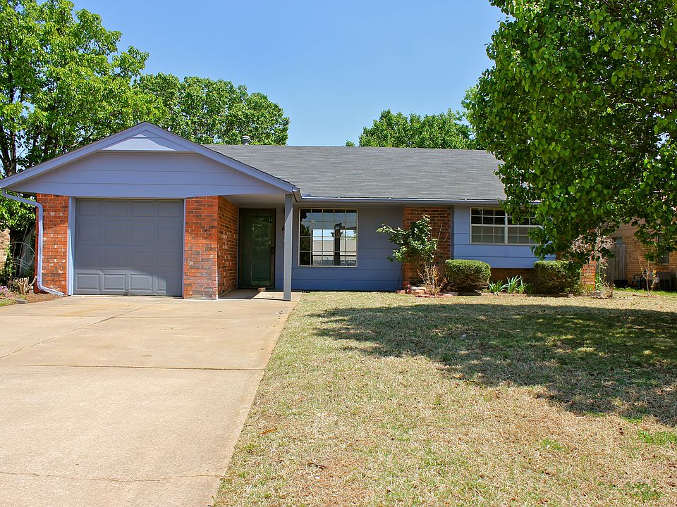 Calling all first time home buyers, students and investors! This 2 bed, 1 bath partial brick home is located near shopping, restaurants and transportation. The single car garage is great for Oklahoma weather, offers access to the generous attic storage, and enters into the indoor laundry room and kitchen. Kitchen is generously sized and all major appliances stay with the home! Eat in bar leads into the dining area. Living room, dining room, hall and one bedroom have laminate floors. Kitchen and bath have tile floors. Hallway has not one but two built in storage units along with a closet for an abundance of storage. Master bedroom is generously size and offers a window seat area that would make a great reading nook and has a large closet. Secondary bedroom features two closets. Backyard has a concrete patio great for grilling and entertaining, privacy fence and mature trees on the lot. Water heater was replaced in Jun of 2017.Don't miss this great opportunity.