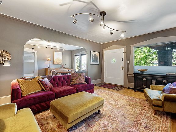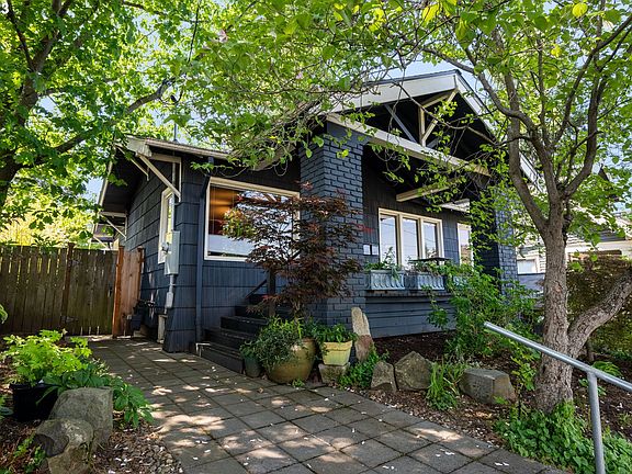 Get in and be wowed! Inside the house and in the backyard it is so much quieter than you would think-- Really, not kidding. The size of the living room, dining room, kitchen and primary bedroom are no joke either. These spaces are BIG for a smaller home. Just a super cool place inside and out. Sporting hallmarks of a true arts and crafts bungalow and infused with artistic naturalism, this fanciful roost provides home and income! Nestled in the trees, you can lounge and look out from your perch on the porch. Open the whimsical front door- welcome to this sophisticated, yet comfy home. Take in the wondrous Asian-inspired architecture, generous room sizes and eclectic styling. The sizable living room with substantial gas fireplace and ample dining room make entertaining a joy. Glass doors bathe the large cook's kitchen with natural light. Put your chef's hat on, your cookin' with gas! Quartz counters, stainless steel appliances and room to multitask. Hardwood floors, distinctive moldings and the clawfoot tub maintain the original vintage flair. One level living, with a bit of overflow space below for studio and storage. The oversized backyard is an oasis- lush and peaceful, complete with a joglo house for sheltered outdoor living in sun or sleet. Handy garden shed for your tools and gear. Updated mechanicals include a tankless water heater, central AC and 200 amp service. Help with the mortgage? You bet! A fully permitted One bedroom, one bath ADU with its own front patio. Apartment features quality finishes, gas cooking, in-unit laundry and is always rented! The full package for the right price, located where Montavilla meets Rose City and North Tabor. What's a Joglo, you ask... a peaceful, traditional Javanese structure with a pyramid-like roof which resembles the form of a mountain.*Photos have not been stretched or shot with wide angle. Front door, chairs and archway are all extra wide and inviting.* [Home Energy Score = 5. HES Report at https://rpt.greenbuildingregistry.com/hes/OR10215216]