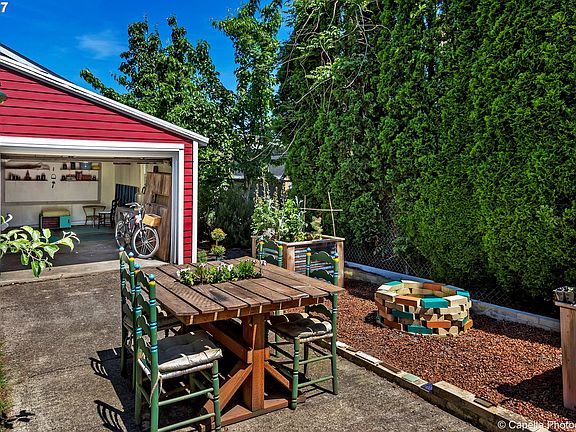 Gardener's Paradise! 1920's ranch/bungalow. Many recent updates, designer details, fixtures, & finishes. Marble counters, tile. House painted in '16. Garage new siding/electrical panel. Huge sunny yard (0.14 acres) w/ mature fruit trees, roses, fire pit, grapes, & drip water system! Detached 400 sq.ft double garage/studio potential ADU (buyer to confirm with City). Stunning & stylish home steps to restaurants & shops of Dekum Triangle.