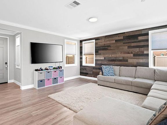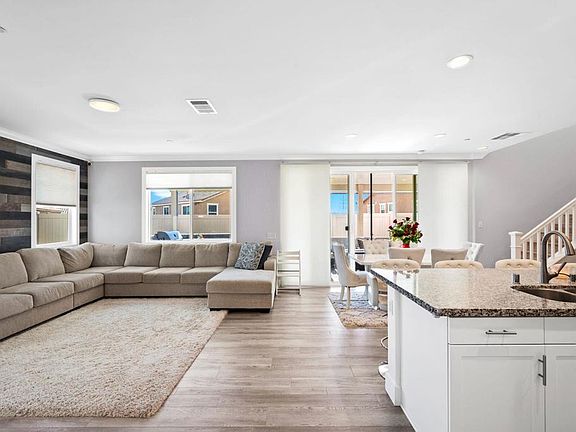 This Exquisite Residence features 3 very Spacious Bedrooms and 3 Baths. Located on a private cul-de-sac. This home shows true pride of ownership from the moment you walk in the front door. Highly Upgraded throughout. Freshly painted exterior and interior of home, vinyl plank flooring, Open Gourmet kitchen with large island/breakfast bar, with an abundance of upgraded cabinetry, granite slab counters, full granite backsplash, farmers sink, Recessed lighting. Separate dining area just off the kitchen or eat at your cozy breakfast bar. Very spacious living room and lower level bathroom for guests. Custom beautiful wainscoting decorative paneling on living room wall and master bedroom wall. Large Master Suite with large Master Bath. Master Bathroom has Double Vanity Sinks, Separate tub and shower, Big walk-in closet. Plush carpeted bedrooms. Full laundry room upstairs with plenty of shelving. This home is the Ultimate in Indoor and Outdoor living. The Backyard is a entertainers delight. Covered patio for plenty of shade, Built-in Stone BBQ for your enjoyment,Trampoline and Swing-set included. The beautiful Community of Sundance offers a Pool & Spa, Firepit, BBQs, Playground for the kiddos. Close to Award winning elementary school and Park. Centrally located close to shopping and entertainment. Very LOW monthly HOA. Property is being sold in as-is condition, where is with no warranties either expressed or implied. Specific zoning should be independently verified.