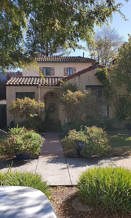 Spanish style 3 bdm, 3 bath with an 11 x 11 office room. Also has a detached 12' x 22' exercise room and a 12' x 15 finished room for 2nd office or extra Bdm. The second story (added in 1981 has a 23.5' x 10' Bdm which can be divided into 2 Bdms and a second Bdm 10' x 11' also a full upstairs bath. Ground floor has front room, separate dining room, kitchen, full bath and a master bedrom with master bath (separate tub and shower. There is a redwood deck and spa accessed from the master bath. The side yard has a large fountain and the gate can be opened to drive in and park. The front gate looks old but is actually a heavy timber gate with iron details with integrated pass door all recently custom built. The gate was installed on heavy steel posts and hinges and a 2' x 2' x 12' concrete grade beam under ther driveway to insure the gate will never droop or become miss aligned. The pass thru door is integrated into the left gate wing with a wrought iron latch. It was custom made and artificially distressed to look old. If you are interested in this home as an investment rental the upstairs can be easily be converted to 3 bedrooms by splitting the larger bedroom in half. The detached structure can be 2 bedrooms, each with separate entrances ultimately making this property a 6 bedroom 3 full bath student rental with a rent potential of approximately $6,000/Mon. - with no building permit required. The upstairs is pre-plumbed for solar hot water heating.