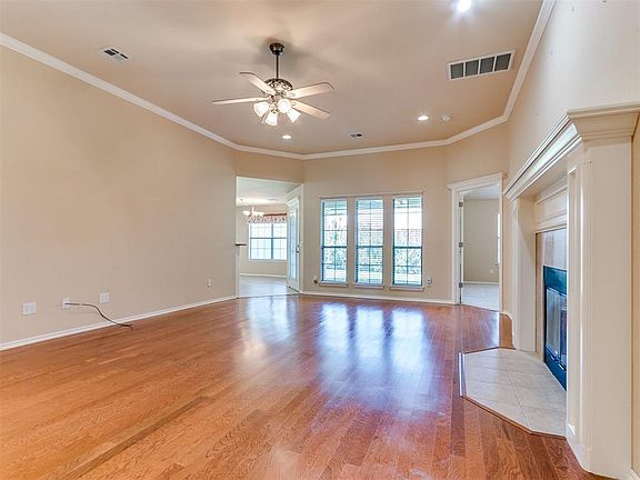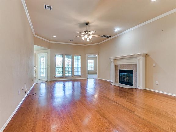 RARE find in the gated community of Bradford Parke! Wonderful 3 bed 2 bath home featuring a split floor plan with plenty of natural light. NEW ROOF-August 2024! The spacious open living room has crown molding, wood floors and a beautiful fireplace with gas logs. The kitchen has tons of counter space, abundant storage, and upper and lower cabinet lighting. Fridge is staying! The large primary suite with a vaulted ceiling has a walk-in closet with built-ins. The primary bathroom has double vanities, shower, and a relaxing Whirlpool tub. It has a fenced backyard with the back fence lined with lovely crepe myrtles. The HOA takes care of the yard work and exterior painting for you! There is a peaceful greenspace/walking trail. Other great features include: sprinkler system, gutters, alarm system, and cultured marble window sills. In Midwest city, close to Tinker.